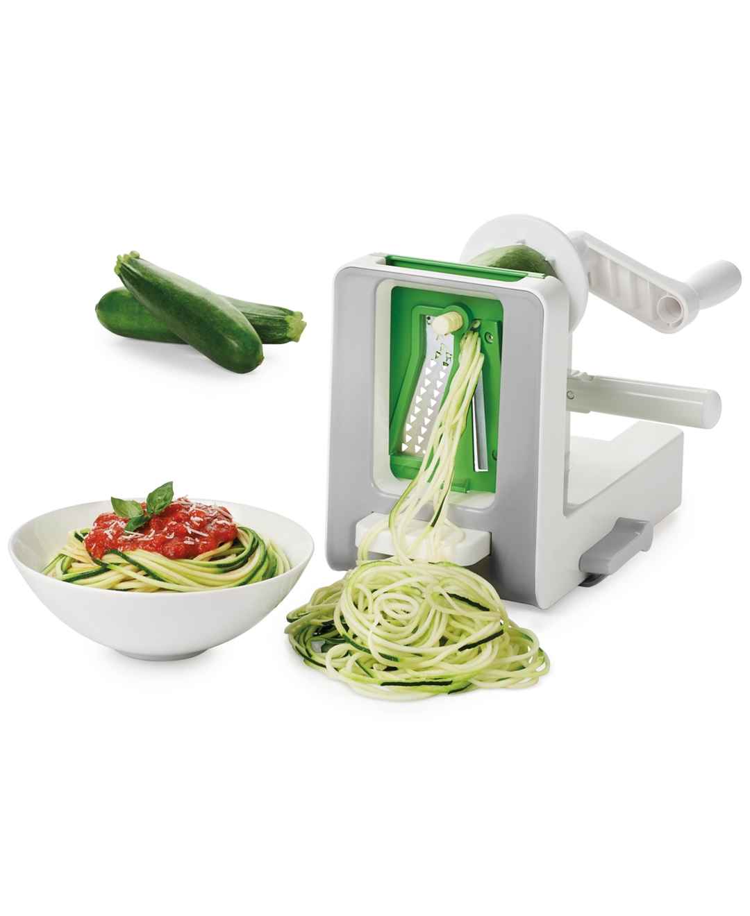 Our Spiralizer is perfect for creating vegetable noodles, a tasty, healthy alternative to pasta. You can also use it to make uniform spirals for curly fries, salads, garnishes and more. Three interchangeable stainless steel blades create spaghetti cut (1/8th inch), fettuccine cut (1/4th inch), or ri...more