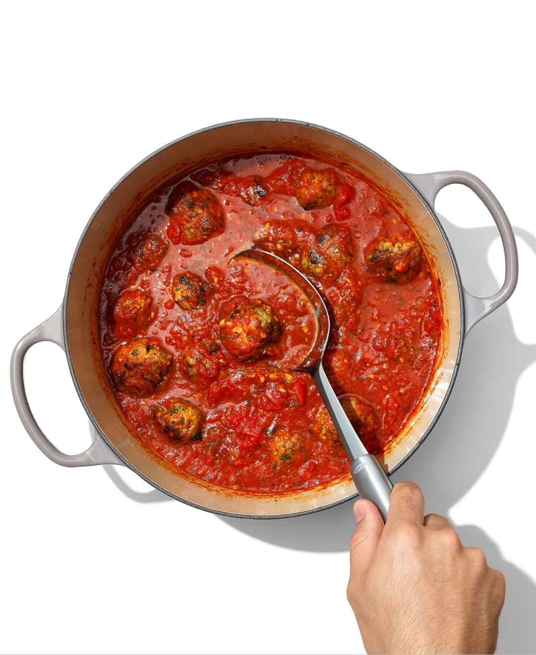 In stainless steel that's sturdy enough for serving hefty portions of mac and cheese or meat balls, this Oxo spoon features an ergonomic handle for comfortable stirring.