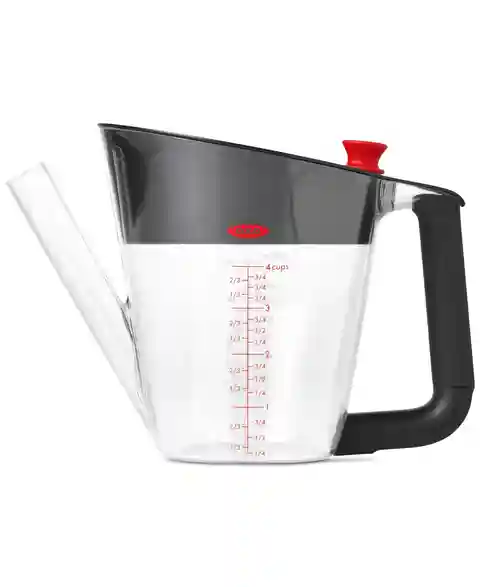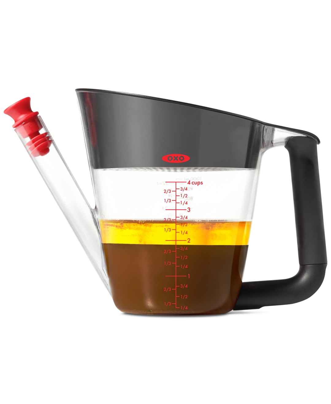 Make healthier gravies, soups and sauces with the Oxo Good Grips Fat Separator. A built-in strainer with stopper separates unwanted bits as the fat rises to the top. Remove the stopper and pour, releasing the healthier stock or sauce drippings from the bottom through the separator's pour spout.