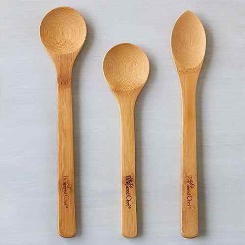 Set includes 10" (25-cm) and 12" (30-cm) round bowl spoons and one 12" (30-cm) oval-shaped spoon.