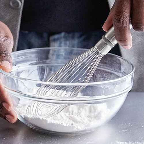 Versatile enough for whisking, blending or mixing light batters. Rounded handle end combined with securely sealed wires offer comfort and control.