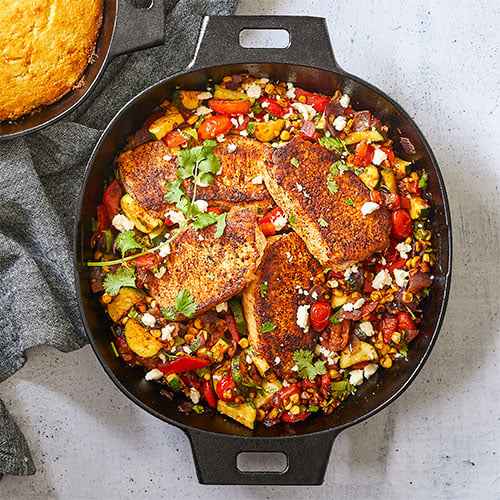 Our 12" cast iron skillet has a place in the modern kitchen because of its versatility. Use it on almost any cooking surface to sear, sauté, fry, braise, bake, broil, or grill.