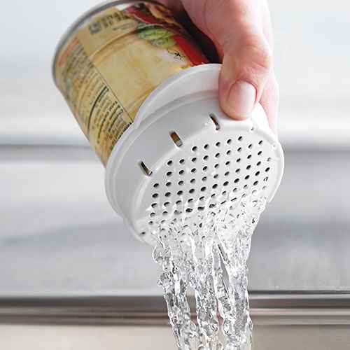 Drain liquid from canned food, such as tuna, vegetables or fruits. Strainer works with most common sizes of cans.