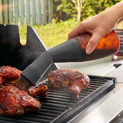 This flexible basting bottle with a brush makes adding sauces on the grill safe and easy. Control drizzling both thick and thin sauces and spread them with the soft bristle head!