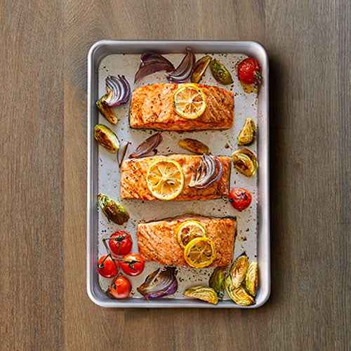 This heavy-duty pan is strong, durable, easy to clean, and cooks evenly, so it's great for small meals, roasting veggies, making cookies, and more.