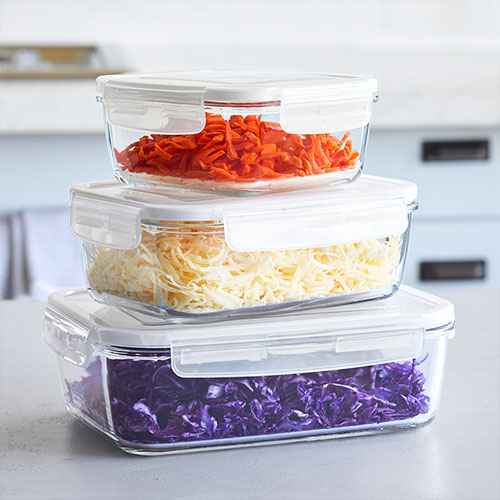 Store and reheat food in the same container. This set includes three sizes for all your leftover and food prep needs.