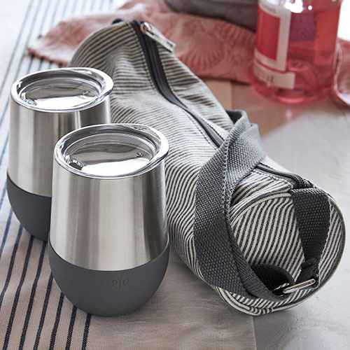 The Wine Tumblers With Bag includes two Wine Tumblers and one Wine Bag. Take your Wine Tumblers to picnics, parties, or anywhere else you go.