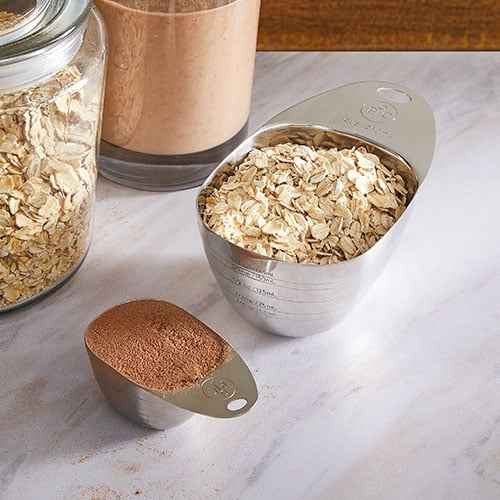 Scoop the right amount every time with these stainless steel scoops. Leave the scoop right inside coffee, flour, sugar, or cereal containers!