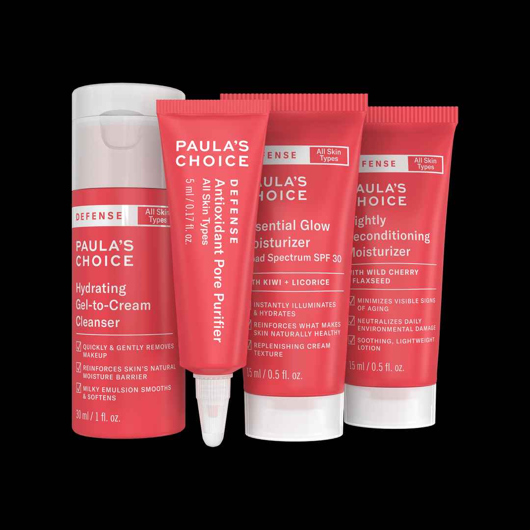 This 3-step 4-product travel kit interrupts signs of premature aging, dullness and discoloration caused by round-the-clock environmental pollutants. 24-hour environmental protection Neutralizes airborne pollutants Formulated for all skin types. Paula's Choice Defense Travel Size Kit