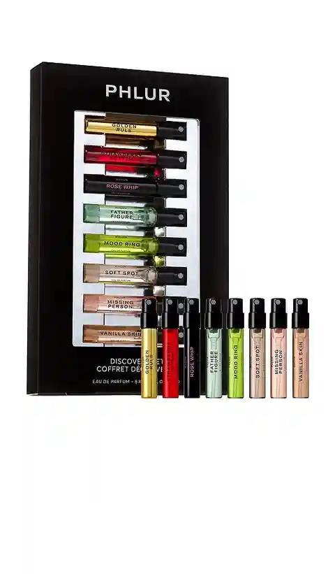 PHLUR 8 Piece 2025 Discovery Kit in Beauty: NA. PHLUR 8 Piece 2025 Discovery Kit in Beauty: NA. Find your new favorite fragrances with the Discovery Set - an eight-piece sample collection of PHLUR's bestselling Eau de Parfums, designed to match your every mood and moment. Wear these fragrances alone...more