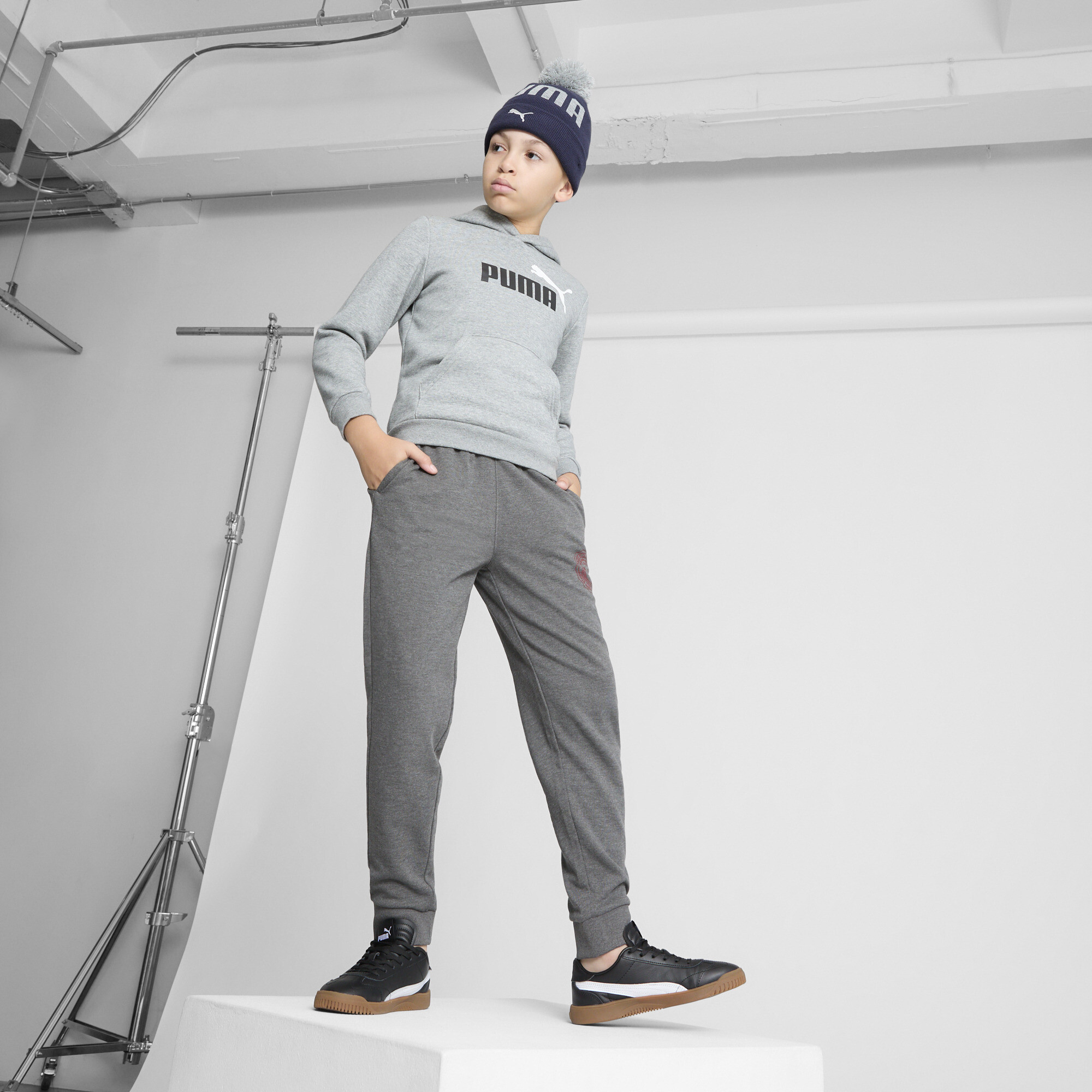 Get winterized in style with this beanie, sporting a pom top for a pop of cool. | PUMA Pom Pom Kids' Beanie Hat in Dark Blue