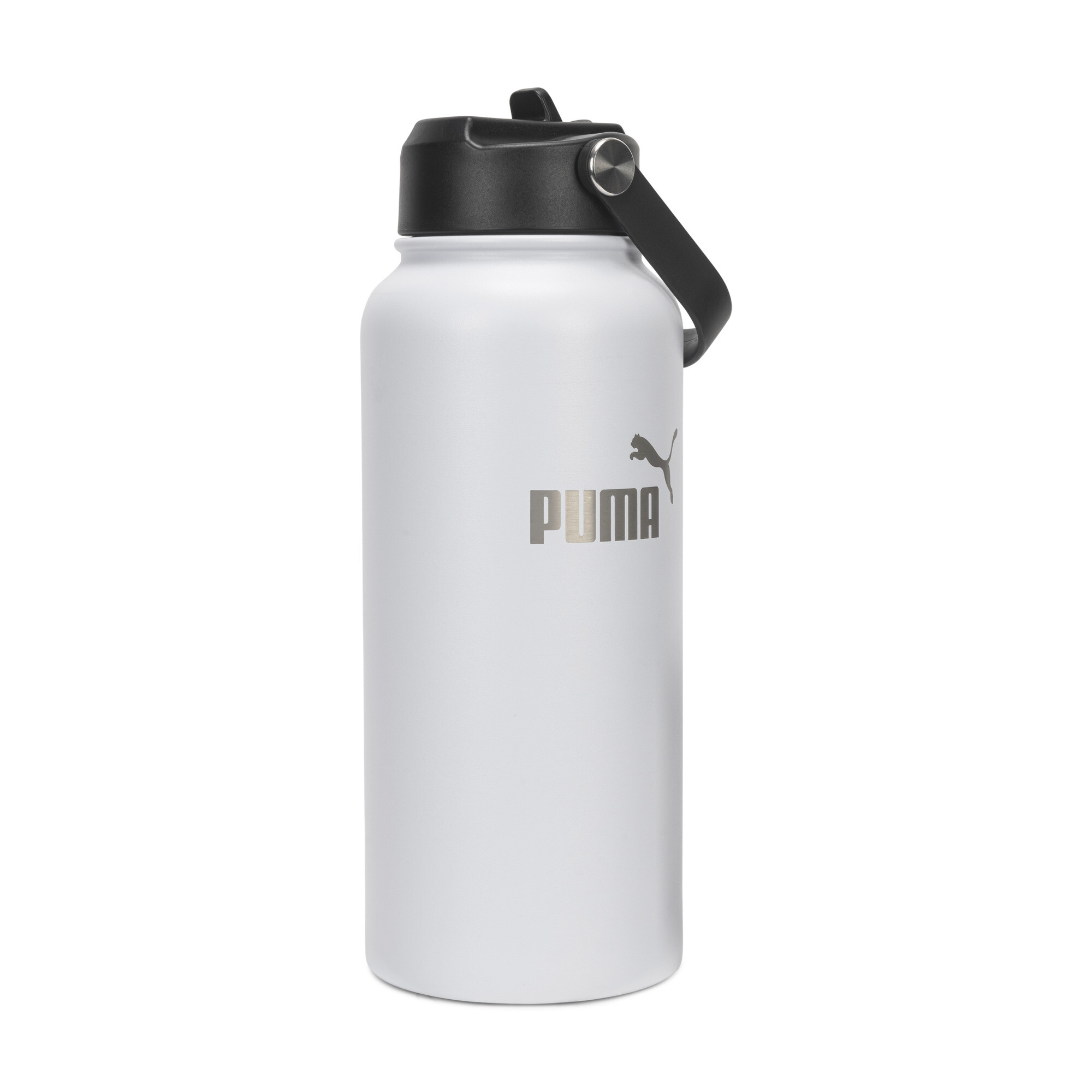 Stay hydrated with our premium 32 ounce stainless steel tumbler. Featuring a screwn on lid, flip-up straw, and swivel handle. | PUMA Honor Flip Top 32 Ounce Water Bottle in Grey