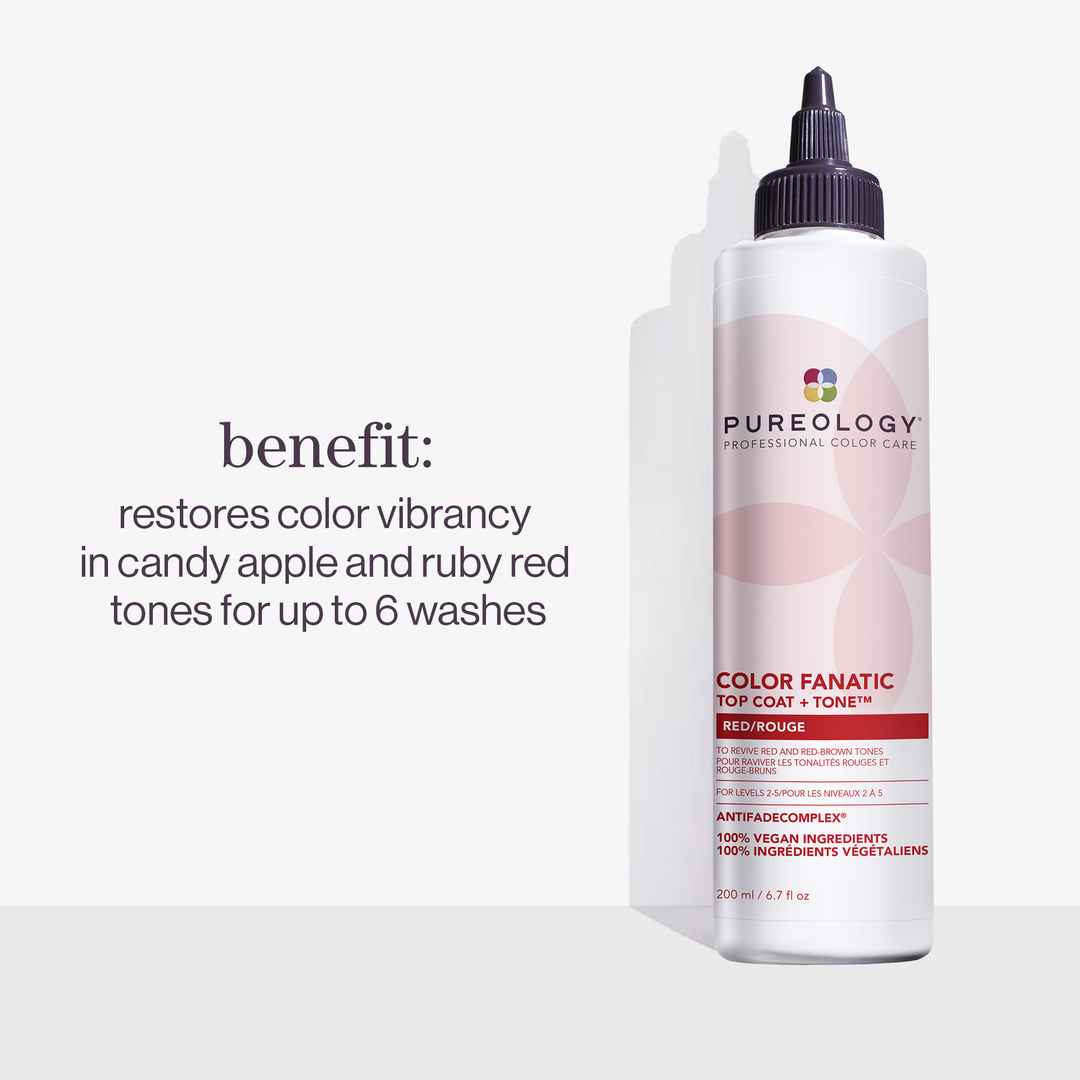 A high-gloss red top coat that restores color vibrancy in candy-apple and ruby red tones for up to 6 washes. | Pureology Top Coat Red Glaze Toner for Dull, Very Dry Hair, Size 200 ml