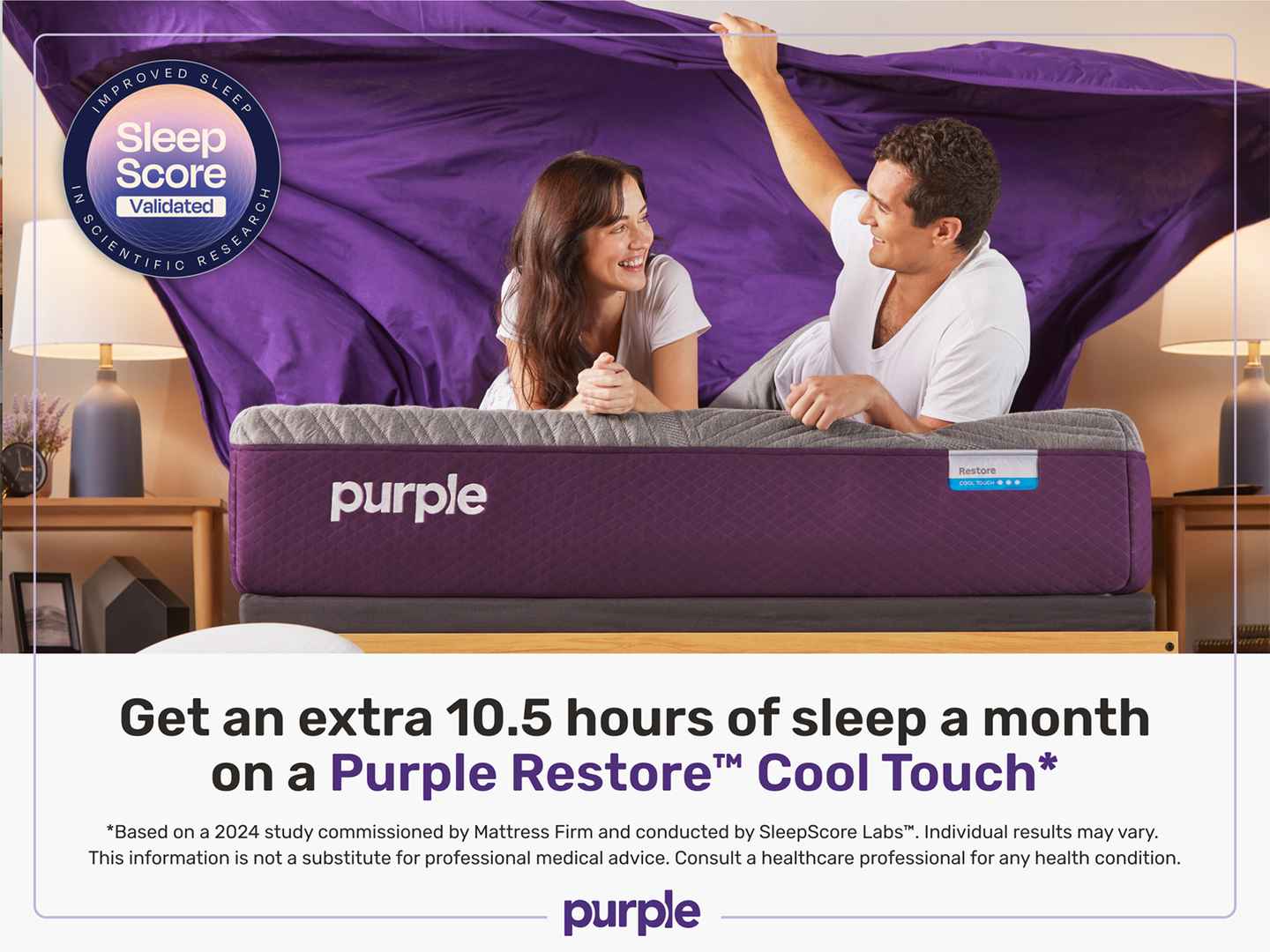 The Purple Restore Cool Touch Mattress combines pressure point cradling comfort from the GelFlex Grid with our most dynamic CoolFlex Coils that delivers pin point pressure relief and full body support while allowing superior breathability for restorative sleep. Cool to the touch yarn for instant coo...more