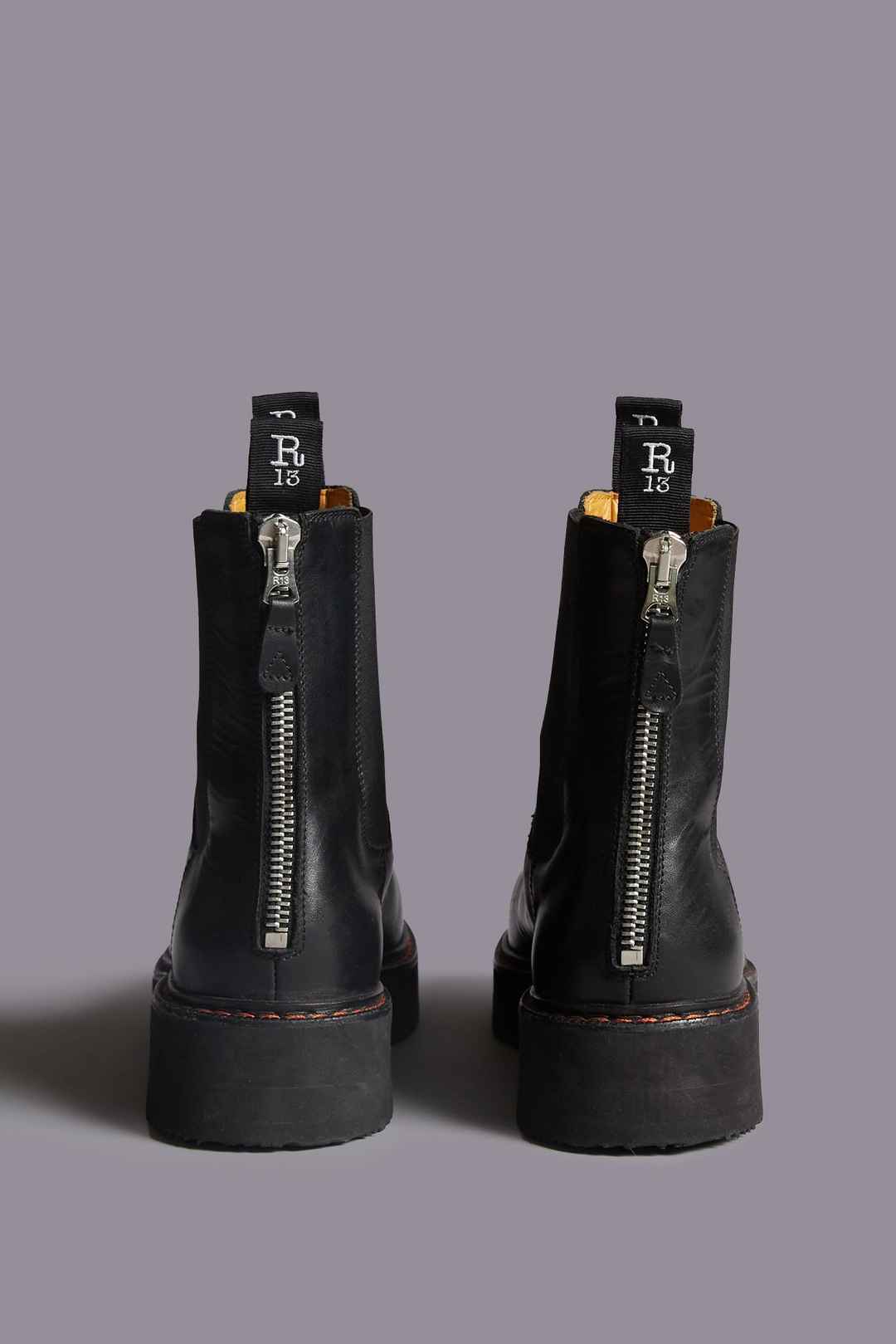 ?MADE IN ITALY; Color: Black; 1.5" Stacked Sole ; Signature Orange stitching&Ecru Embroidered Pull Tab; Pull Tabs on Either Side of Shank; Zip Closure Up the Back; True to Size; 100% Italian Leather ; R13S0240-001 ; Fits true to size.