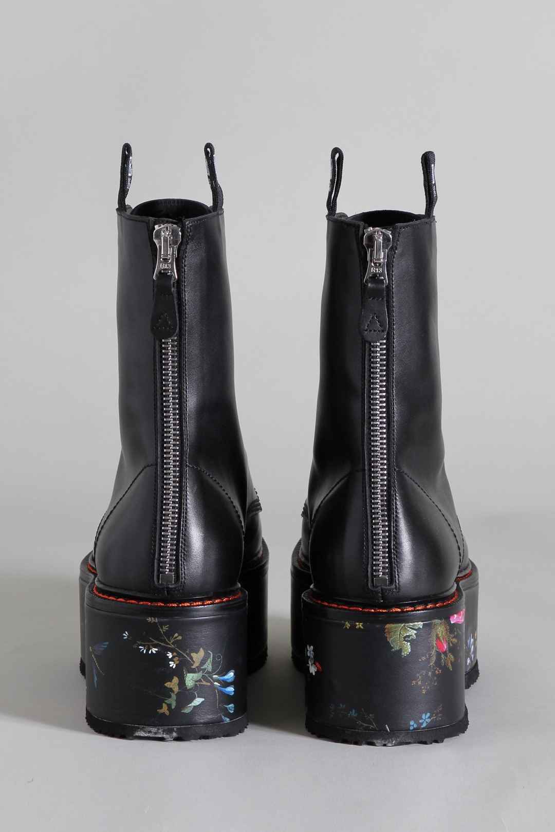 R13 Double Stack Boot - Black With Floral Platform