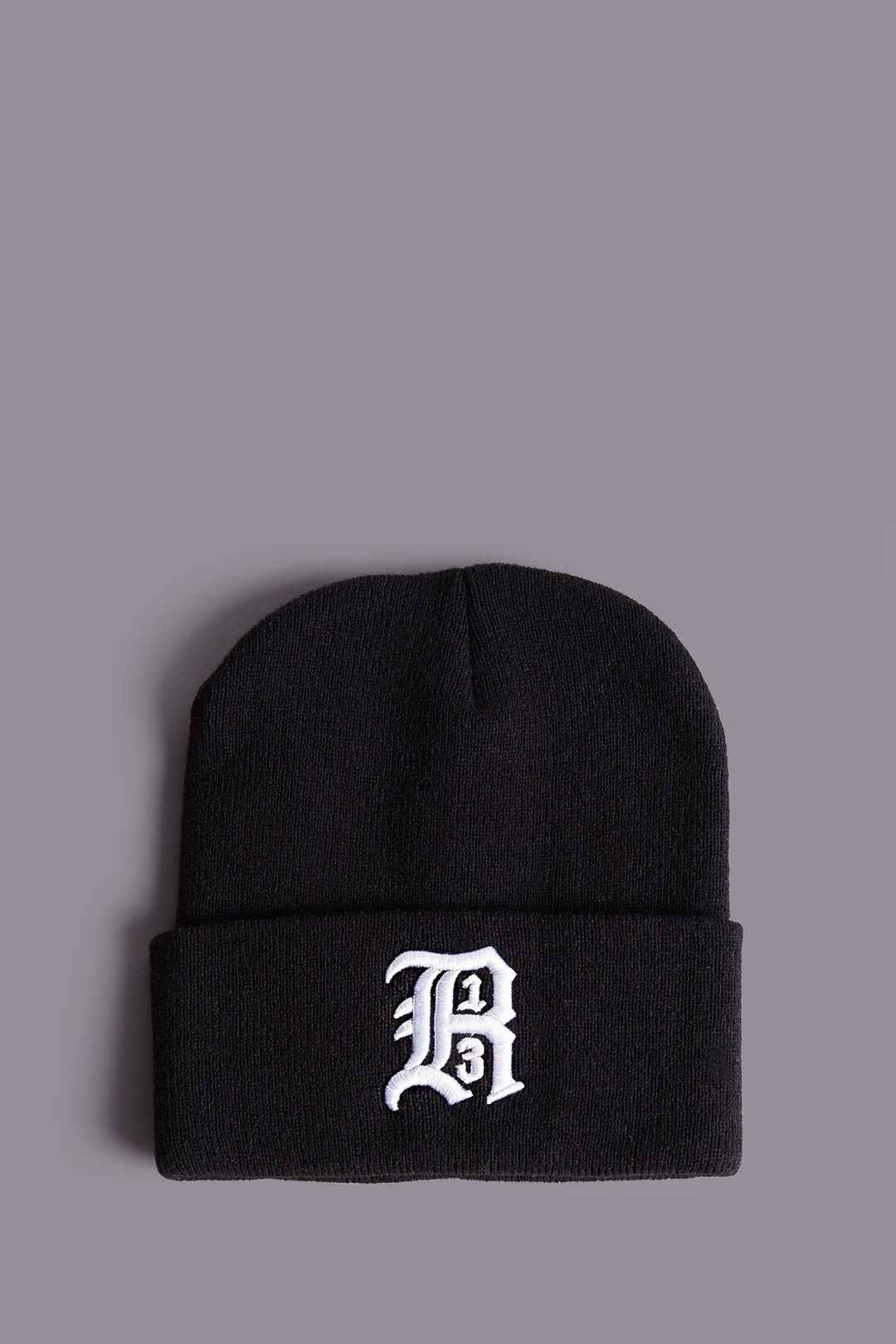 Classic rib knit beanie in black; White embroidered R13 logo; One size; R13A5002-01;