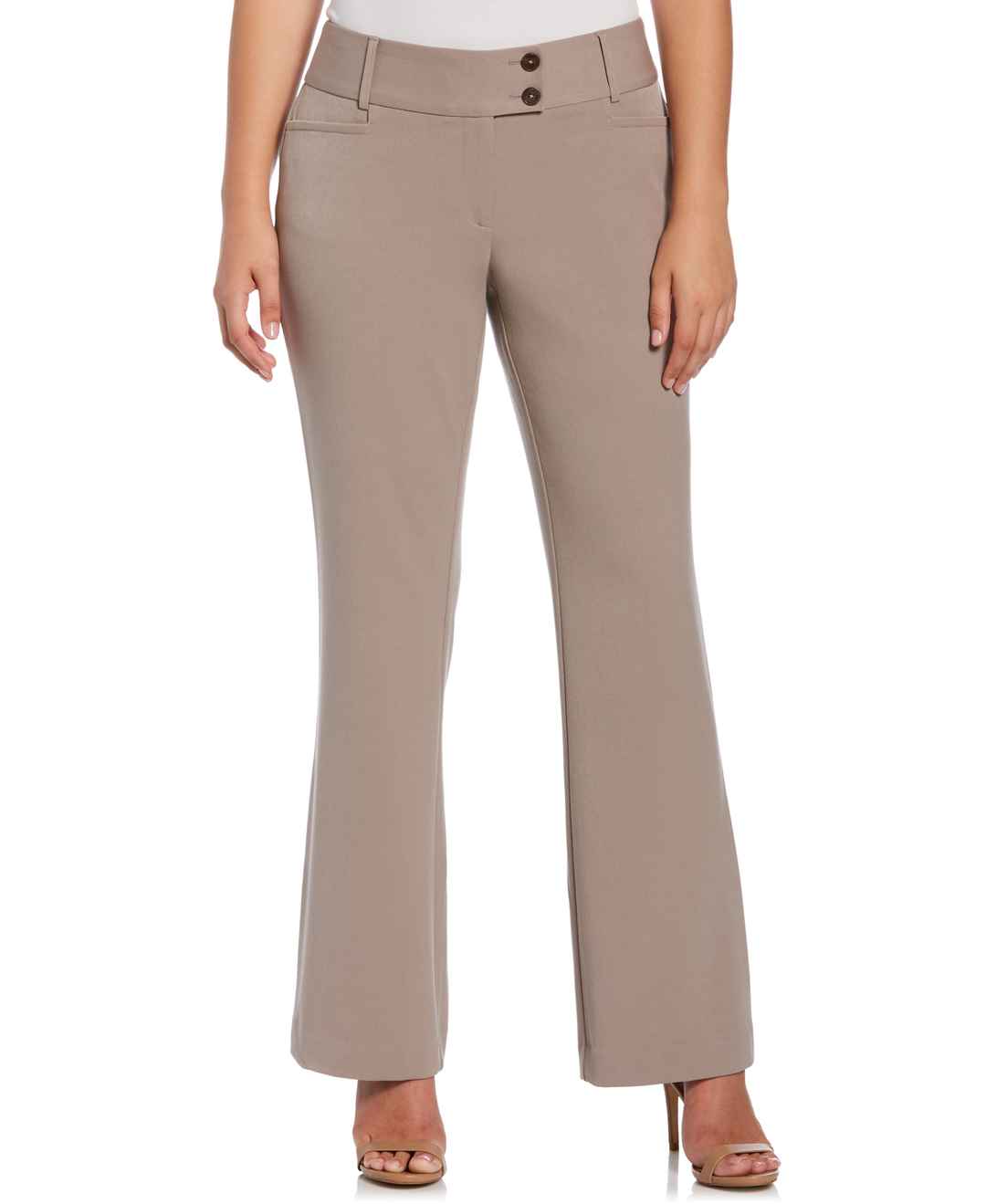 Elegance and comfort combine in these chic bootcut gabardine pants. Pair these pants with a gorgeous top for the perfect office or after - hours look! Rafaella's curvy fit contours your silhouette, flatters your body and is relaxed through the waist and thighs. Two - way stretch fabric moves with yo...more