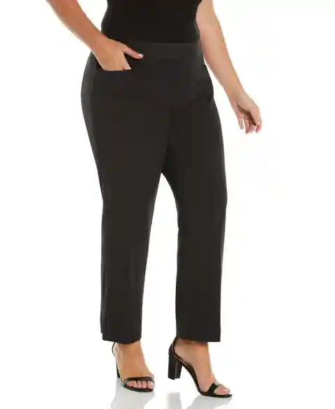 Rafaella Women's Plus Size Slim Leg Stretch Gabardine Pants - Curvy Fit, Plus Size in Black, Size 16W, Polyester/Rayon/Spandex