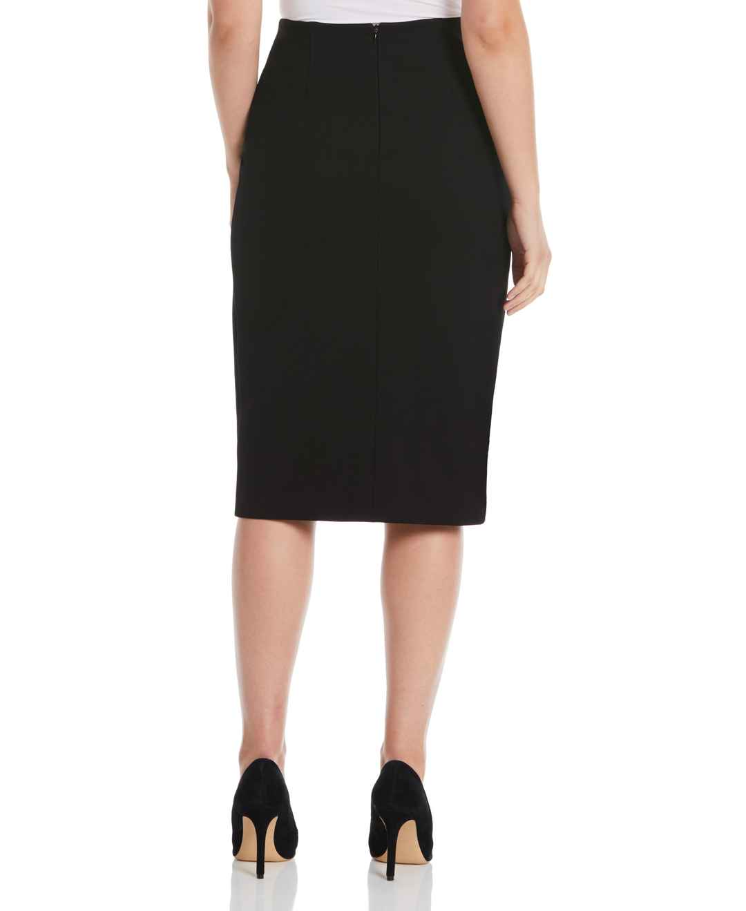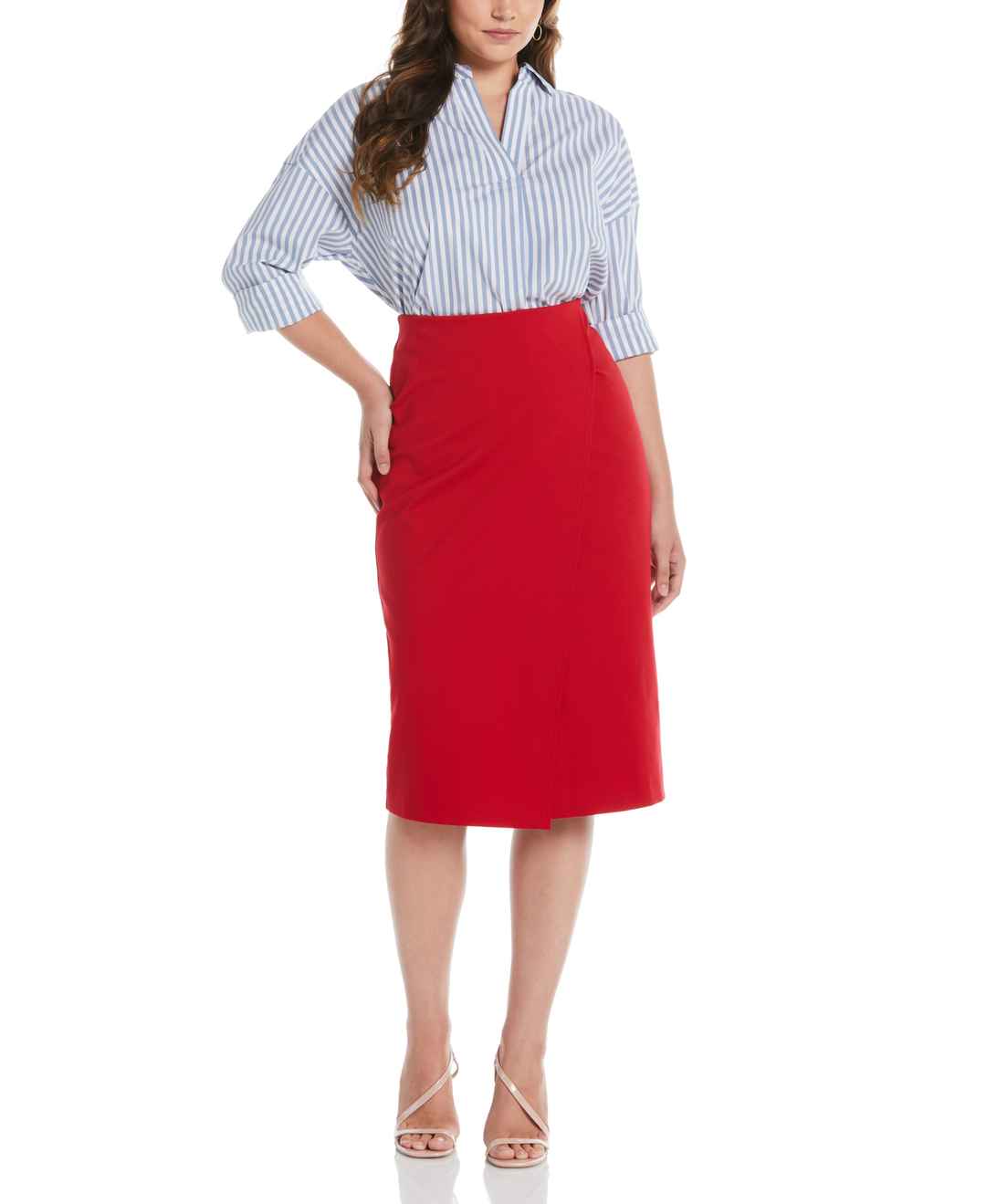 From the office to a night out, there are so many ways to work this versatile skirt from Rafaella. The womens midi skirt is crafted from a comfortable viscose and Ponte knit blend which offers a soft, stretchy yet structured fit and lovely drape. The calf - length skirt features a faux - wrapped loo...more