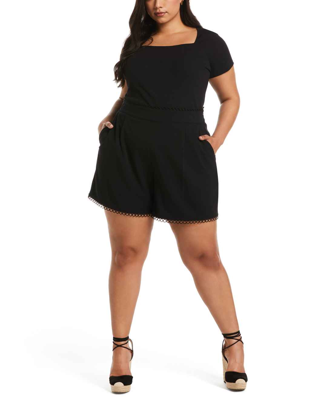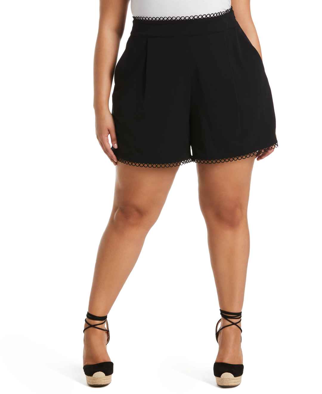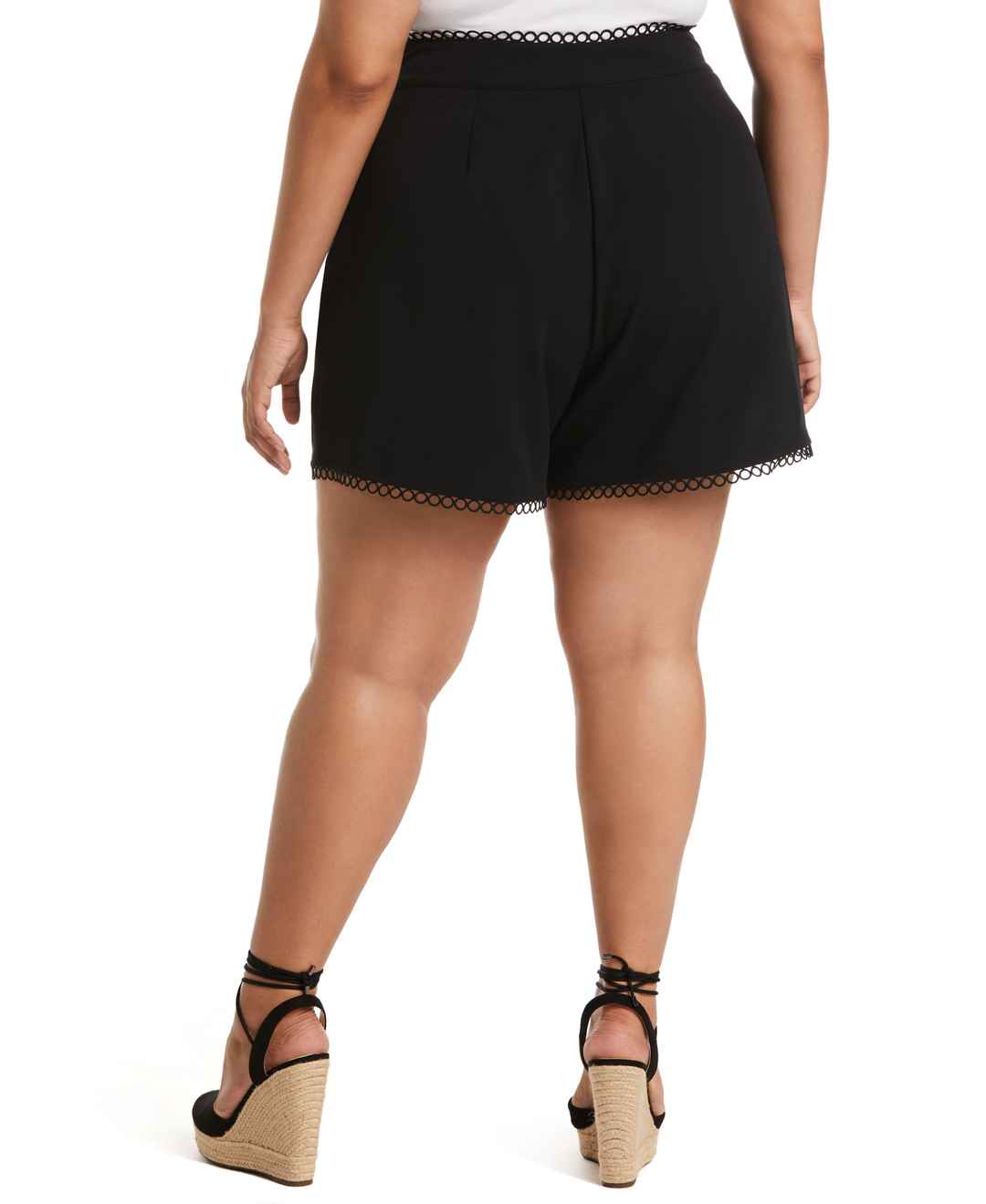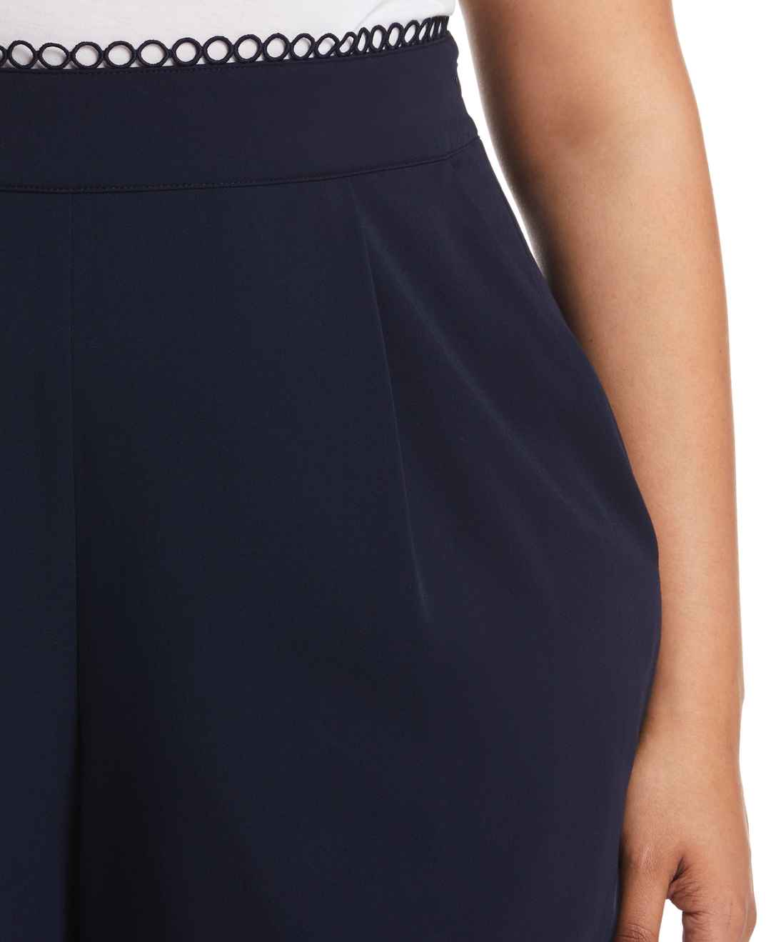 Rafaella Women's Plus Size Classic Fit Shorts With Loop Trim in Navy Blue Black, Size 14W, Solid, Polyester/Viscose/Elastane