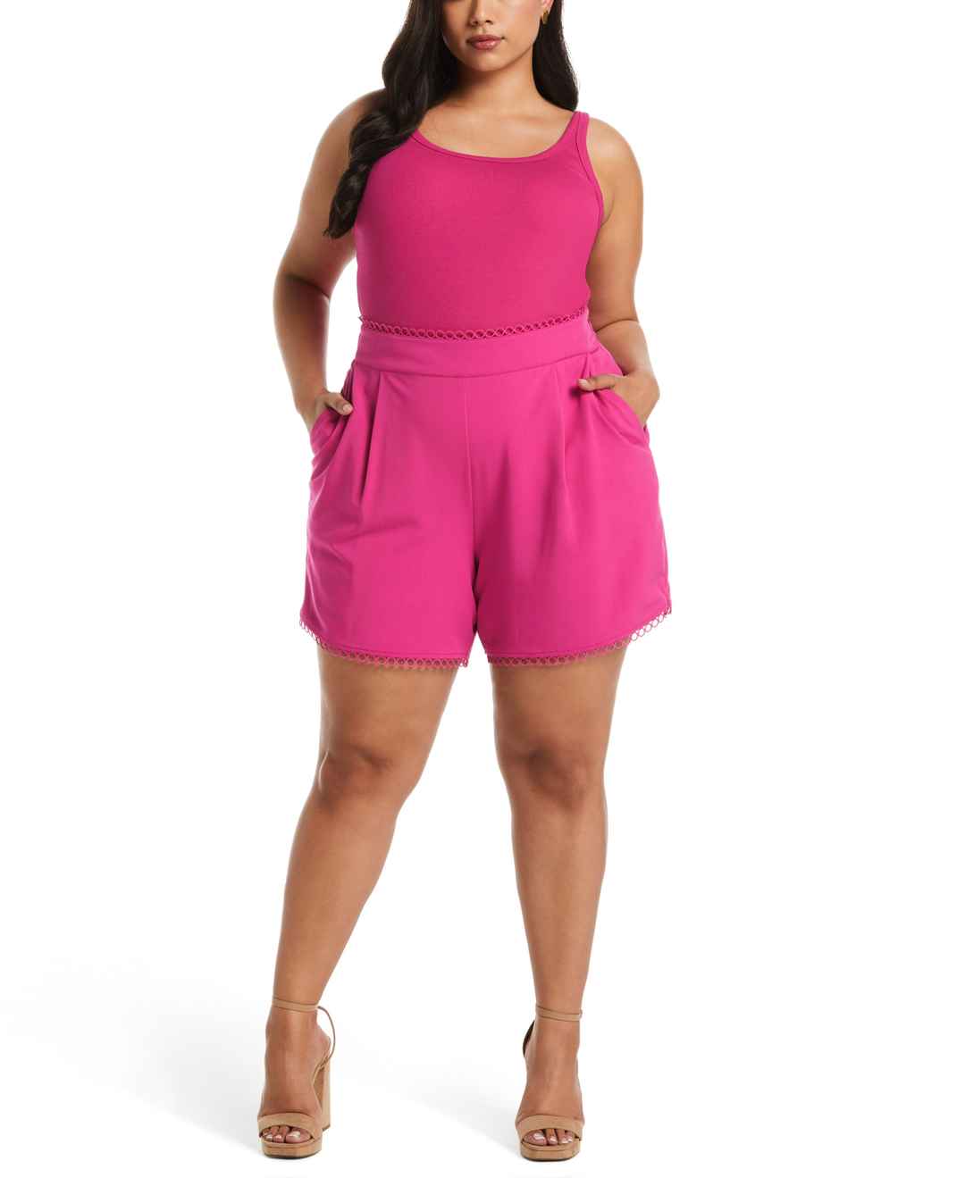 Home Rafaella Rafaella Women's Plus Size Classic Fit Shorts With Loop Trim in Navy Blue Black, Size 14W, Solid, Polyester/Viscose/Elastane