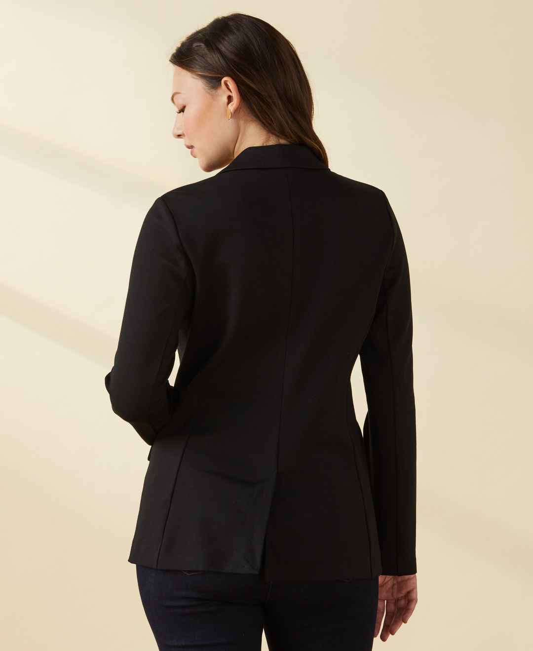 Home Rafaella Rafaella Women's Single Breasted Blazer Top in Black, Solid, Viscose/Polyester/Elastane