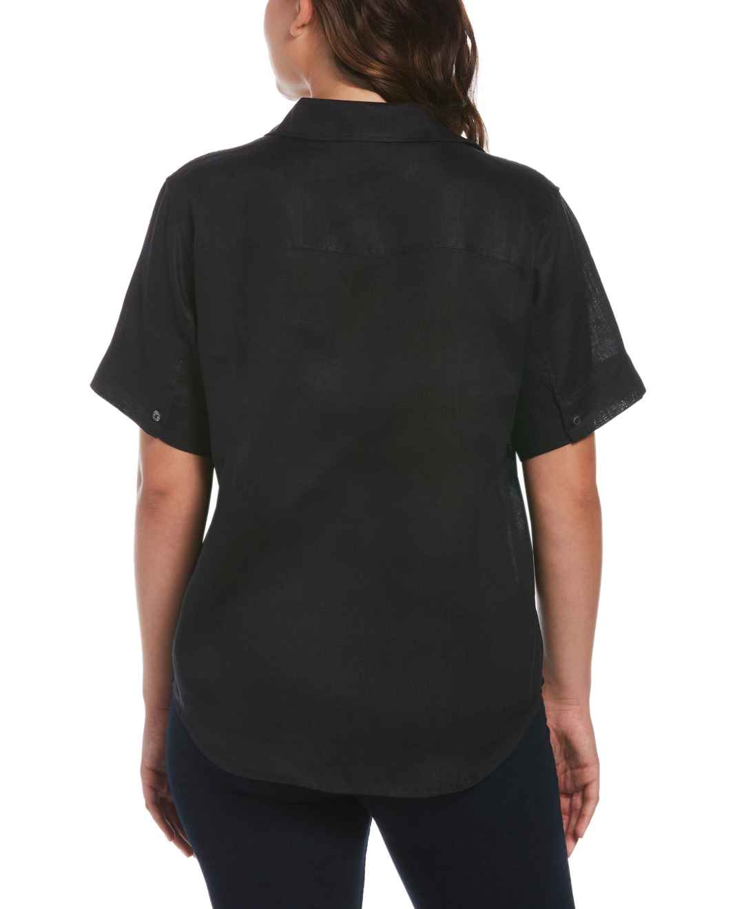 Keep your cool in this womens linen blouse from Rafaella. This short sleeve linen shirt delivers lightweight, breathable comfort thats perfect for the warmer weather. As fashionable as it is functional, this linen top features a split - neck collar for an elevated laidback look and a dropped shirtta...more