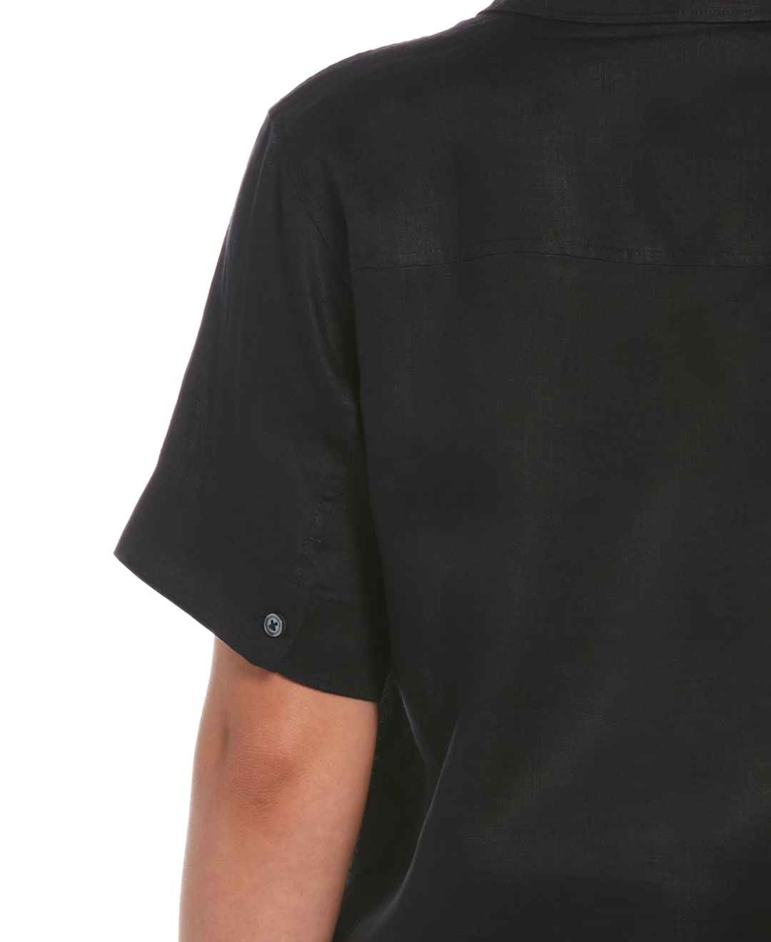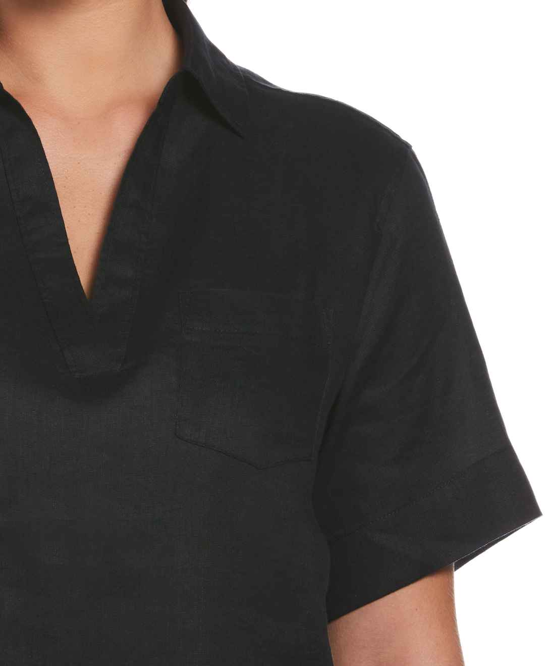 Rafaella Women's Split Neck Linen Top in Black, Size Small, Solid, 100% Linen