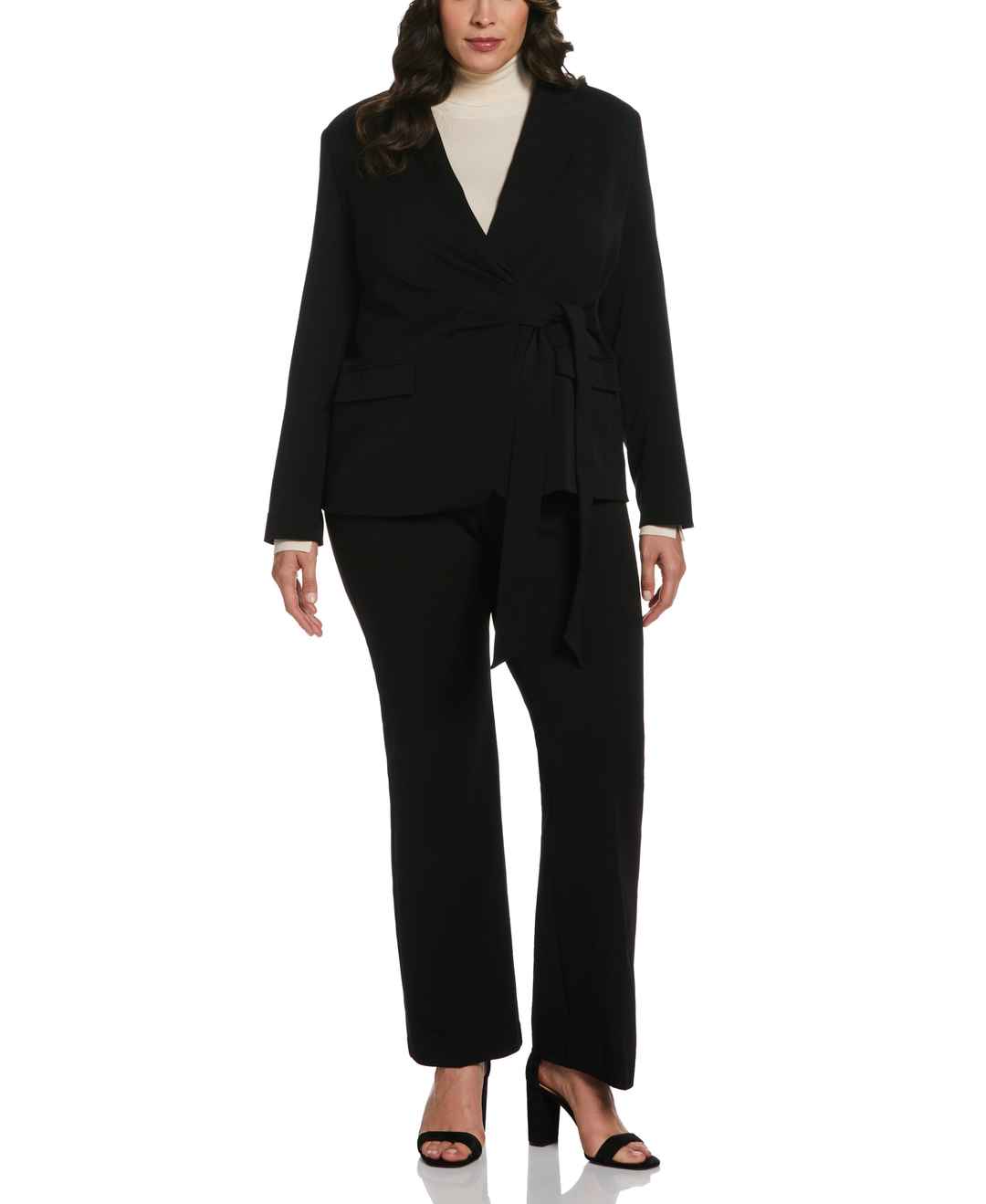 Home Rafaella Ella by Rafaella Women's Plus Size Front-Tie Wrap Blazer in Black, Size 16W, Polyester/Viscose/Lycra