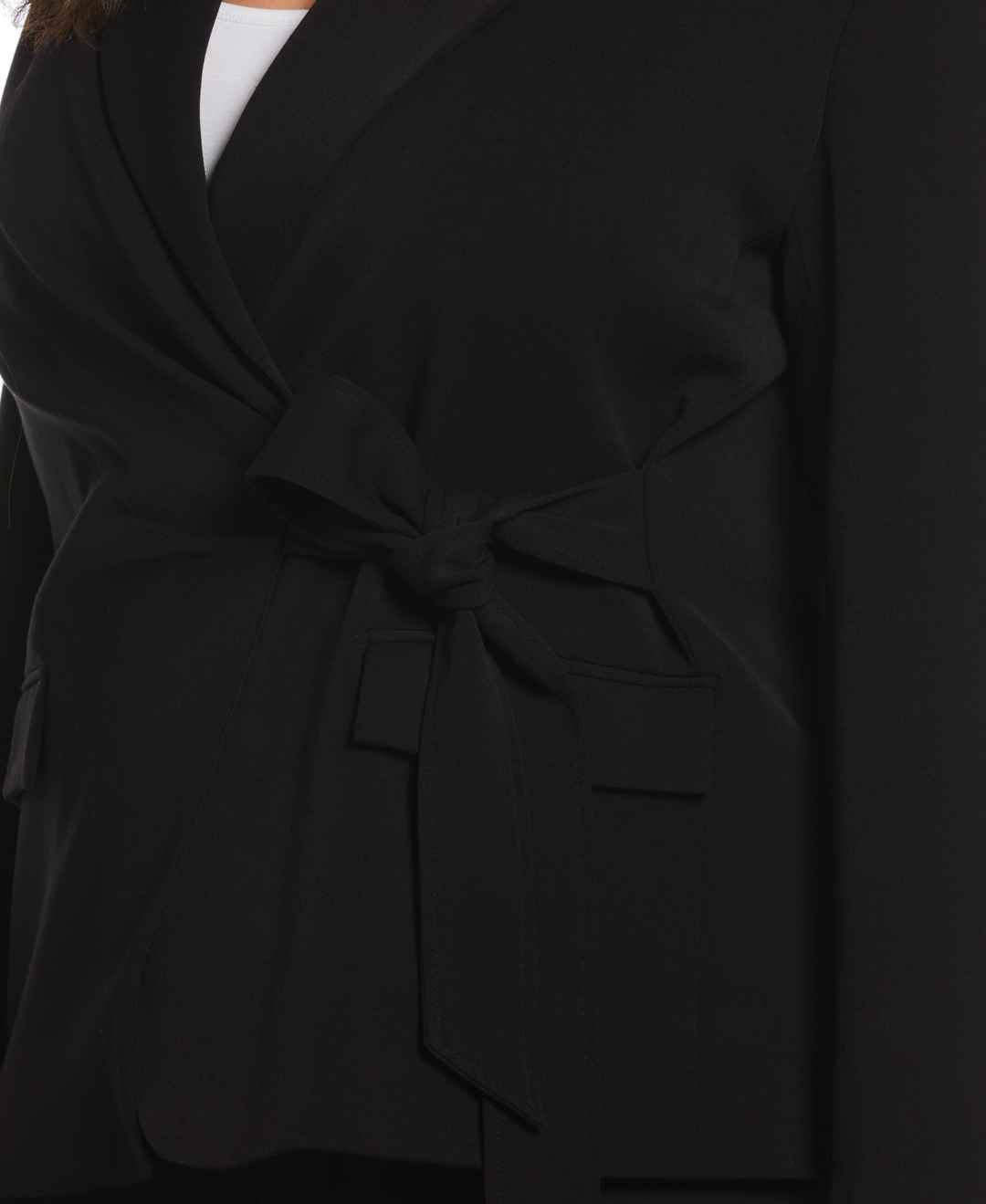 This Ella long sleeve wrap blazer features a stunning belted front tie and crisp peak lapel. Elevate your work wardrobe with a blazer that makes you feel perfectly polished with minimal effort. Gabardine fabrication makes the women's jacket durable and breathable. Light shoulder pads add structure w...more