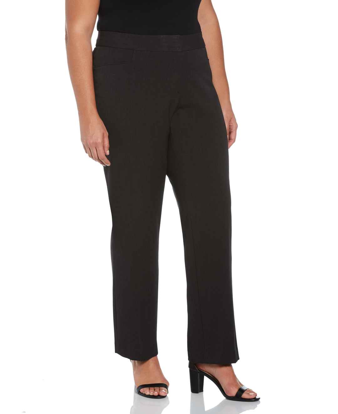 Home Rafaella Rafaella Women's Plus Size Gabardine Straight Leg Pants - Curvy Fit, Plus Size in Black, Size 16, Solid, Polyester/Rayon/Spandex