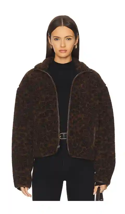 Rag & Bone Sun Sherpa Zip Up Jacket in Chocolate. - size L (also in M, S, XS, XXS)