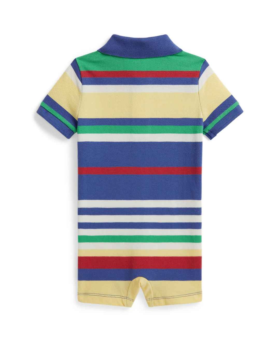 Striped cotton mesh, washed for added softness, gives this Polo Ralph Lauren shortall a fresh, casual look for baby boys. The ribbed polo collar and signature embroidered Pony complete its sporty aesthetic.
