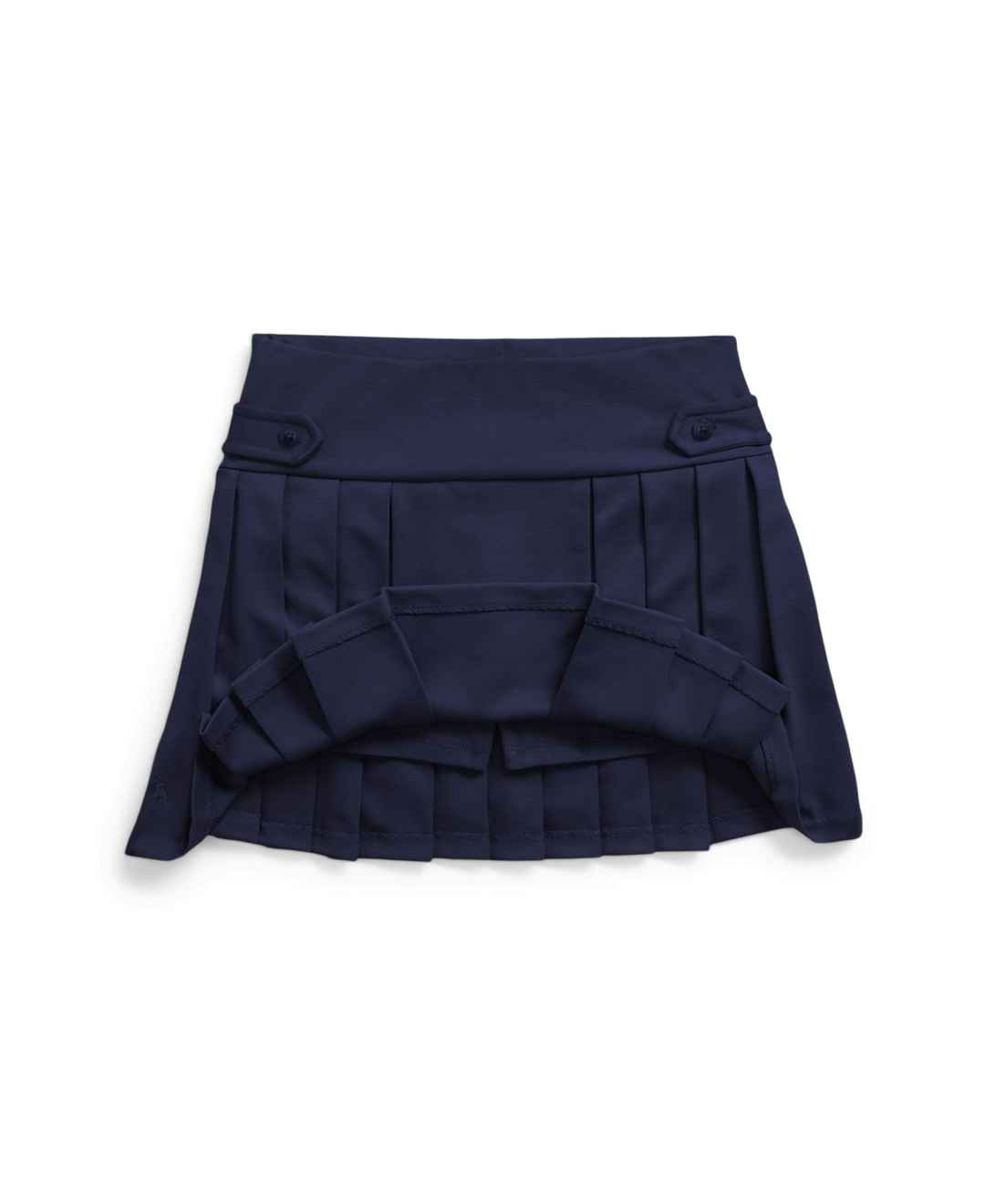 Equal parts cute and comfortable, this pleated skirt is made with smooth ponte fabric, and features stretch jersey shorts at the interior.
