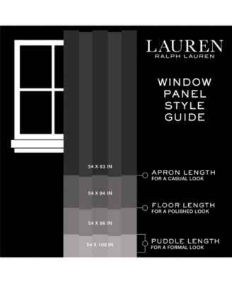 The Lauren Ralph Lauren Vienna curtain panel provides minimalist luxury with heavyweight, linen blend fabric that's lined with a cotton blend fabric and offers light filtering opacity. With back tabs and a rod pocket, it can be hung three ways: on a curtain rod up to 1.5" diameter using tabs, t...more