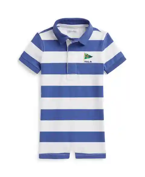 Traditional rugby-inspired details and an embroidered Rl sailboat flag define this nautical-themed Polo Ralph Lauren one-piece. Striped jersey construction offers a classic, active look for little ones.