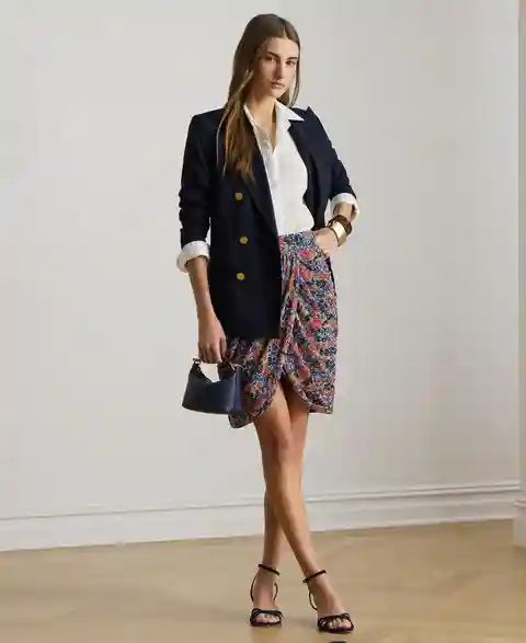 Exuding effortless femininity, this mini skirt by Lauren Ralph Lauren features a faux-wrap tulip silhouette with delicate shirring for a flattering fit. Rendered in vibrant floral print, it provides a comfortable and refined wearing experience.