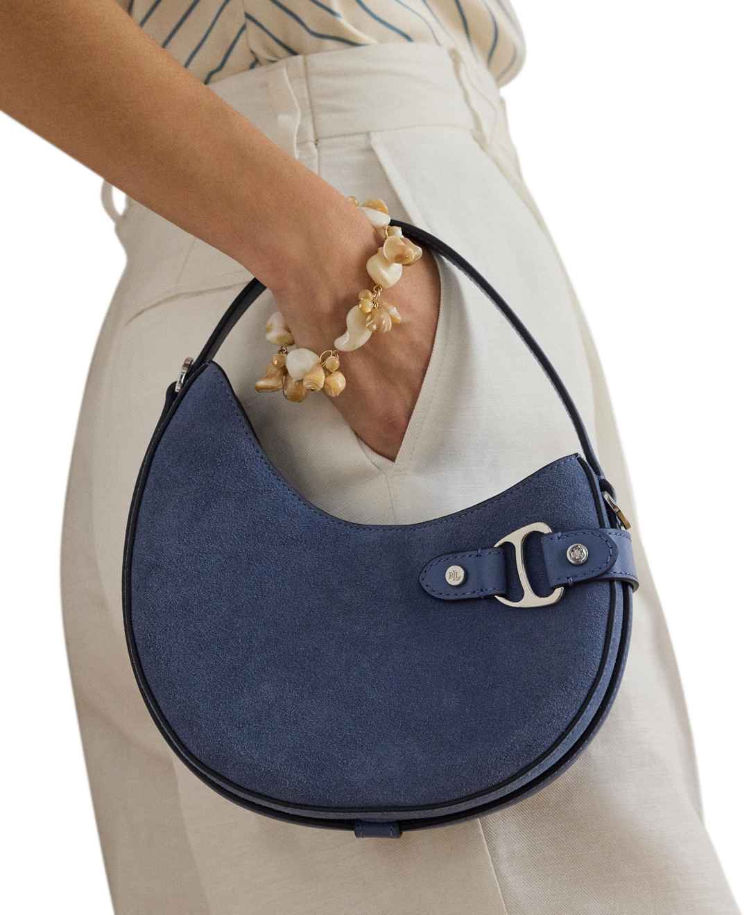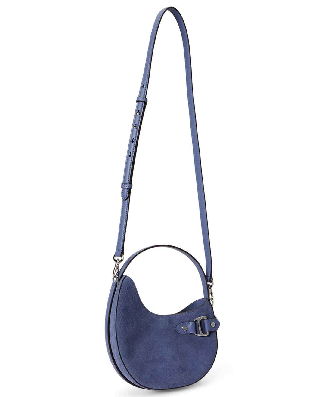 Showcase refined style with this Lauren Ralph Lauren small Tasha bag, crafted from a luxurious combination of suede and supple full-grain leather trim. An equestrian-inspired D-ring, a curved asymmetrical silhouette, and both a top handle and removable, adjustable crossbody strap provide multiple st...more