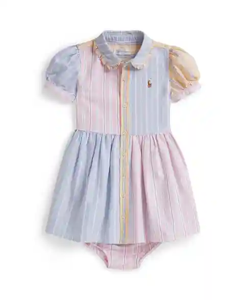Polo Ralph Lauren Baby Girls' Striped Fun Shirt Dress and Bloomers - Blue Pink Yellow Multi