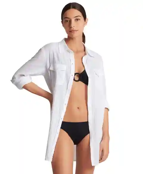 Lauren Ralph Lauren Women's Classic Camp Shirt Swim Cover-Up - White