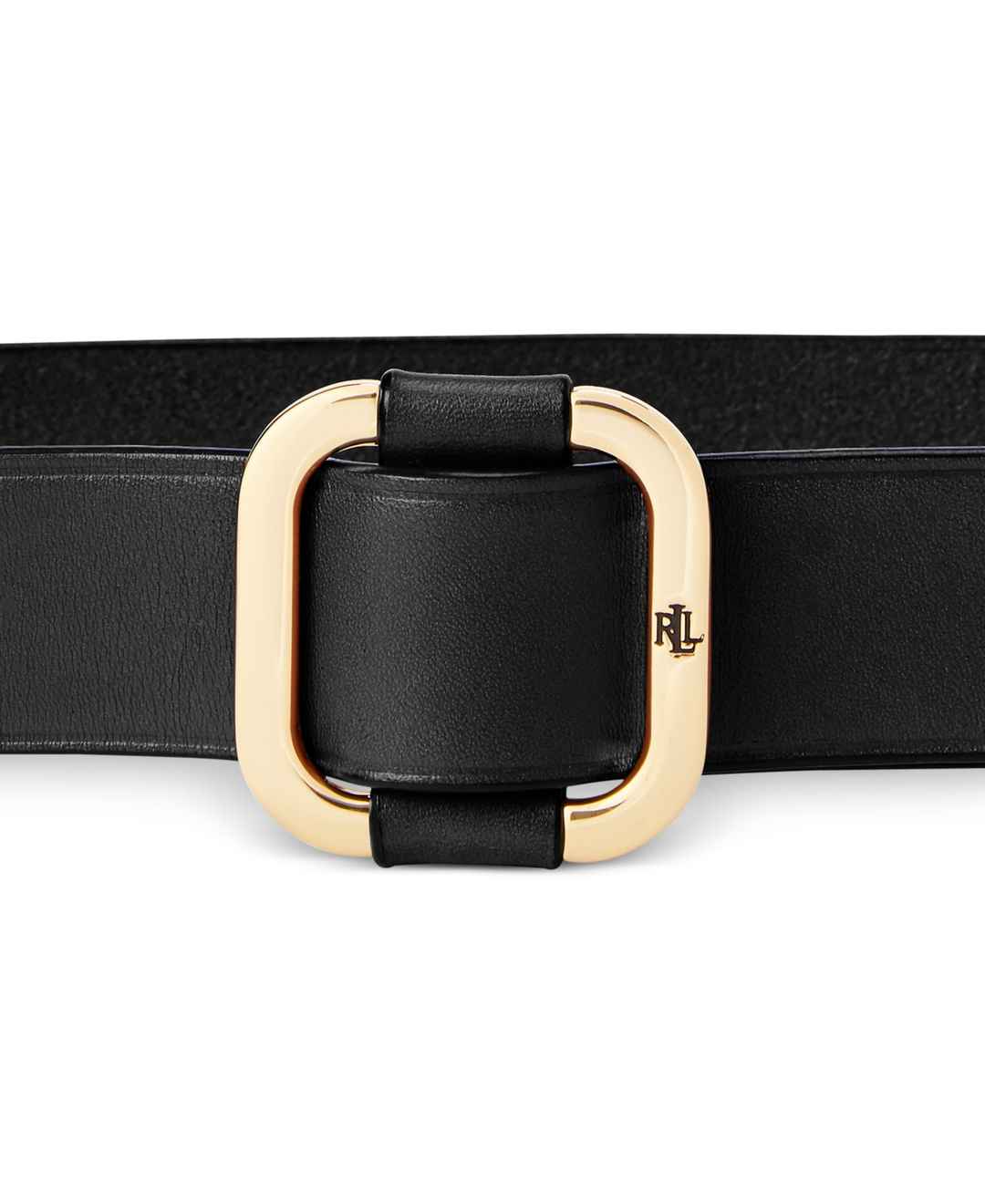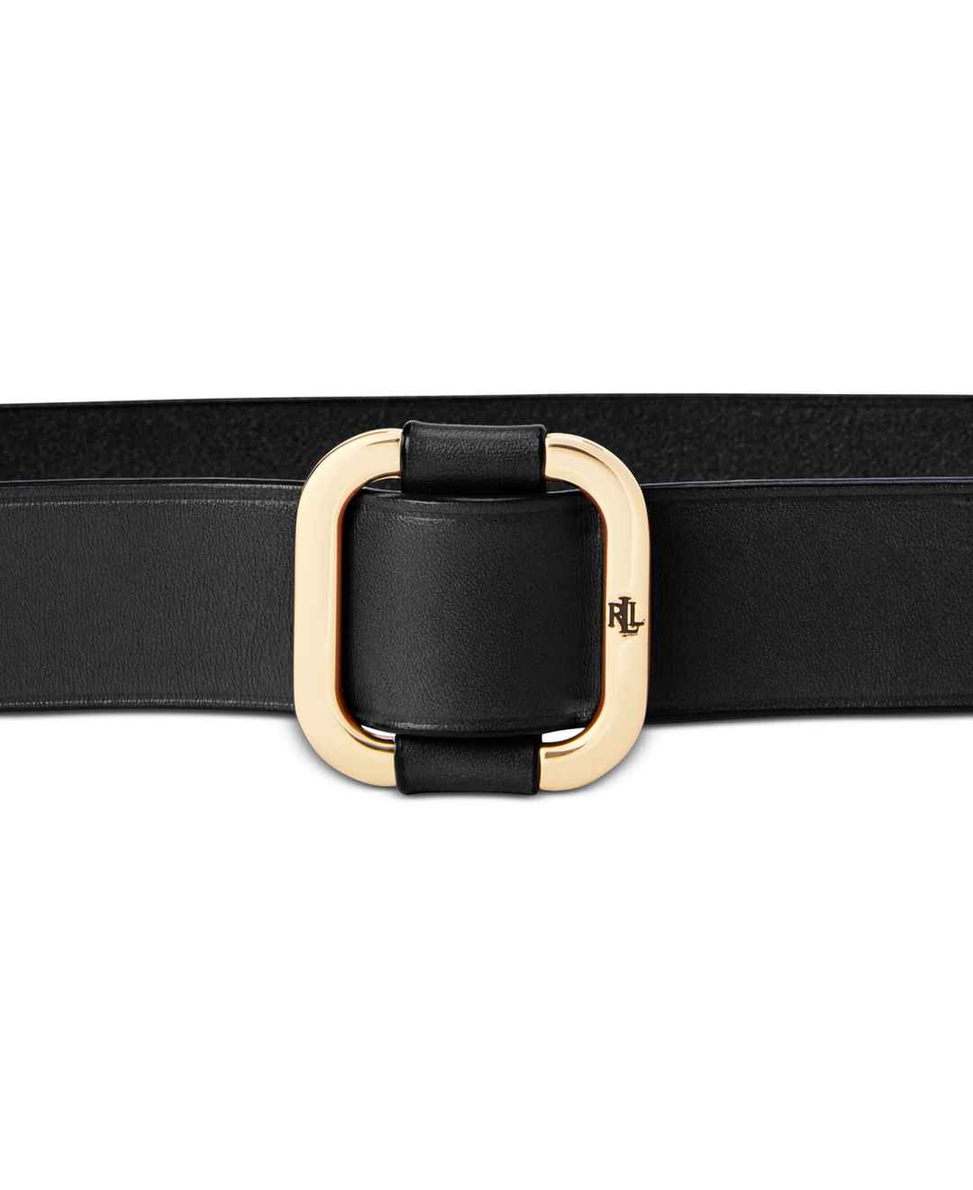 Lauren Ralph Lauren Women's Leather Slide-Buckle Belt - Black/Brass