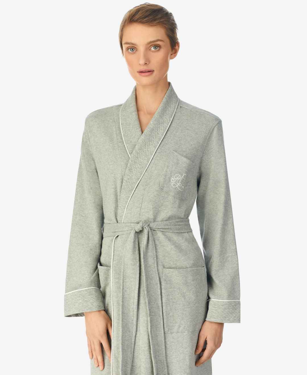 Wrap yourself in cozy comfort with this soft, cotton robe by Lauren Ralph Lauren featuring a quilted collar and cuffs.