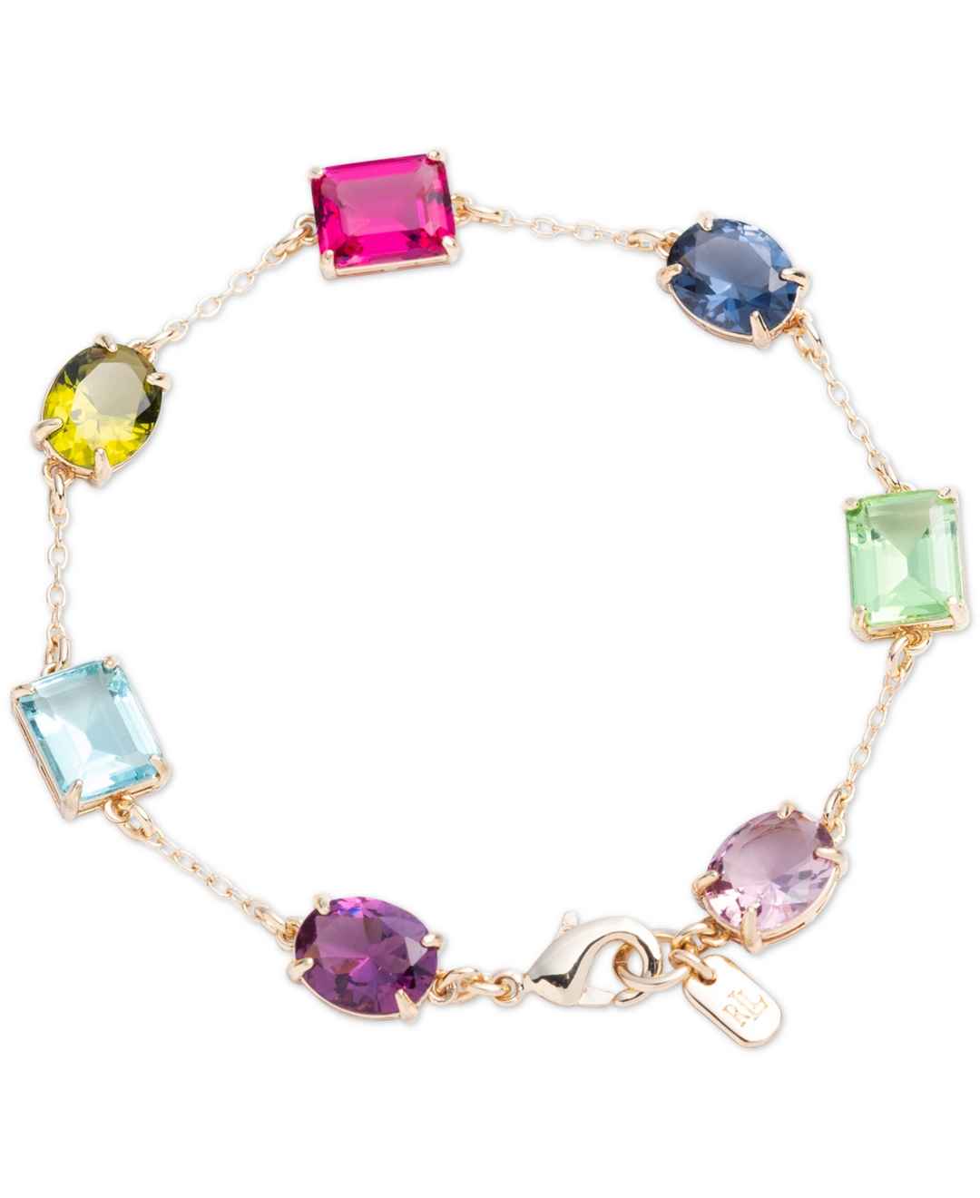 Lauren Ralph Lauren Gold-Tone Multicolor Stone Flex Bracelet - Misc