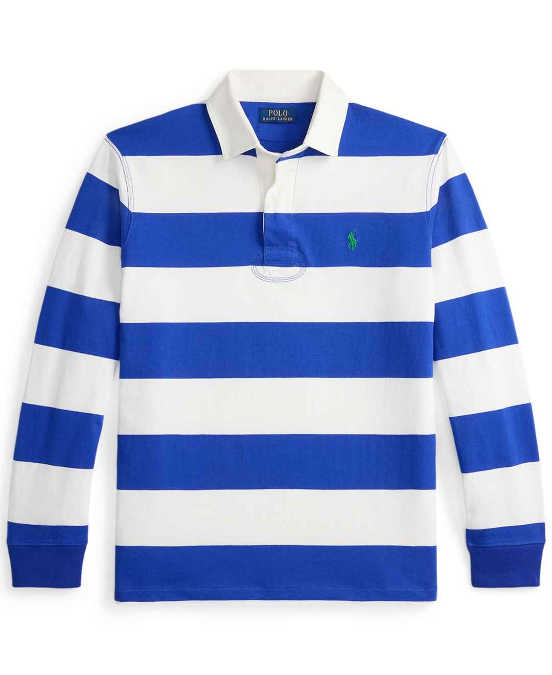 Capturing a preppy yet sporty sensibility, this Polo Ralph Lauren rugby shirt features all the hallmarks of a traditional design. Durable cotton jersey honors the sport's rough-and-tumble heritage. Distinctive stripes and ribbed cuffs create timeless style.