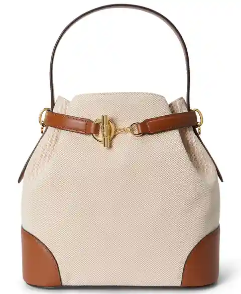 Lauren Ralph Lauren Canvas Small Blaike Bucket Bag - Natural/Buff Canvas/Lauren Tan