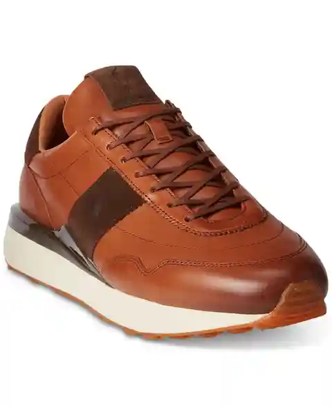 Polo Ralph Lauren's Train 89 modernizes Polo's classic '70s-inspired running sneaker with contemporary design elements like a Tpu heel insert and a substantial sole. The burnished leather upper is detailed with tonal suede trim and subtle logo accents.