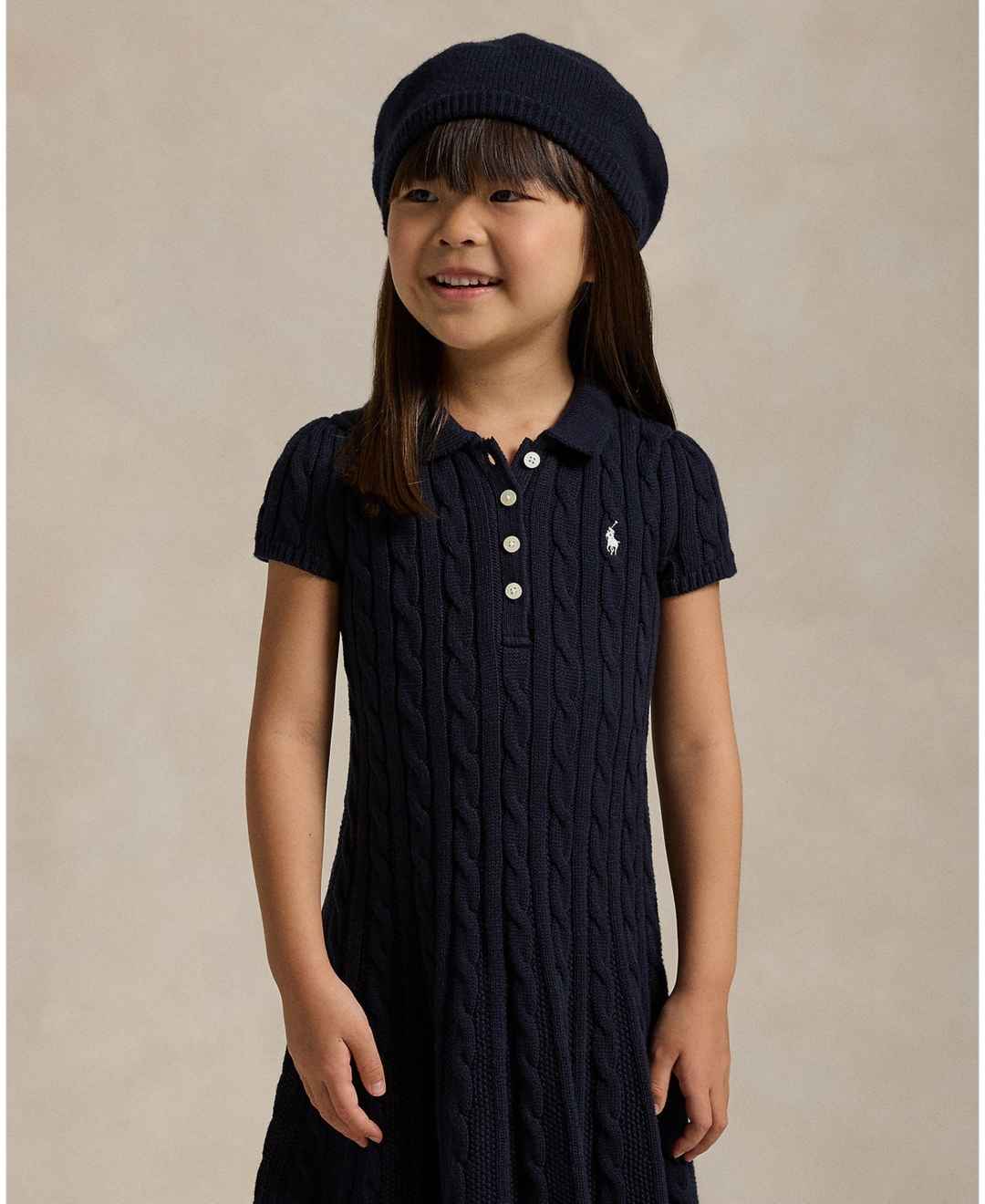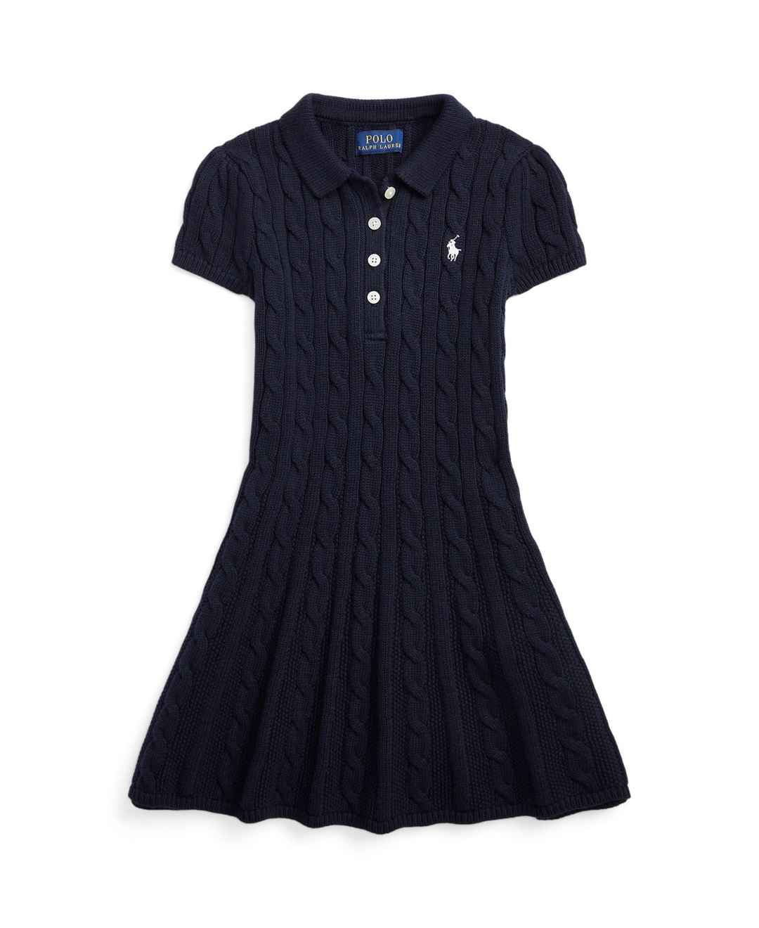 Inspired by our iconic Polo shirt, this A-line sweater dress is made with medium-weight, cable-knit cotton and embroidered with our signature Pony.