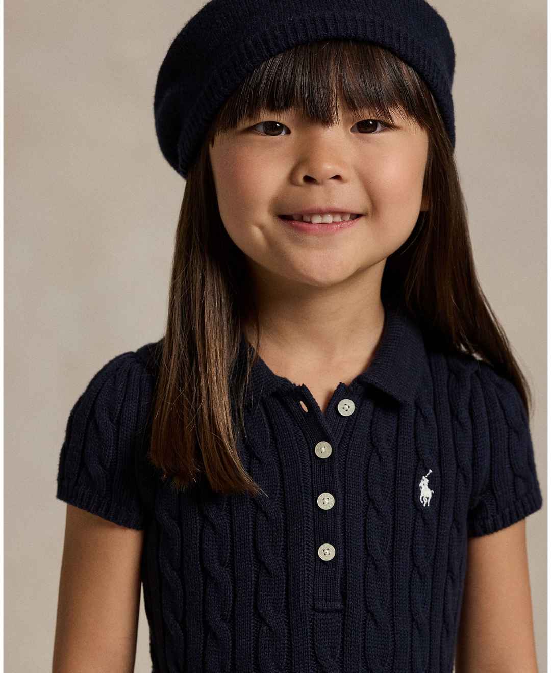 Home  Ralph Lauren  Polo Ralph Lauren Toddler and Little Girls Cable-Knit Cotton Polo Sweater Dress - RL Navy with Prch Cream