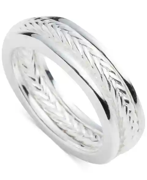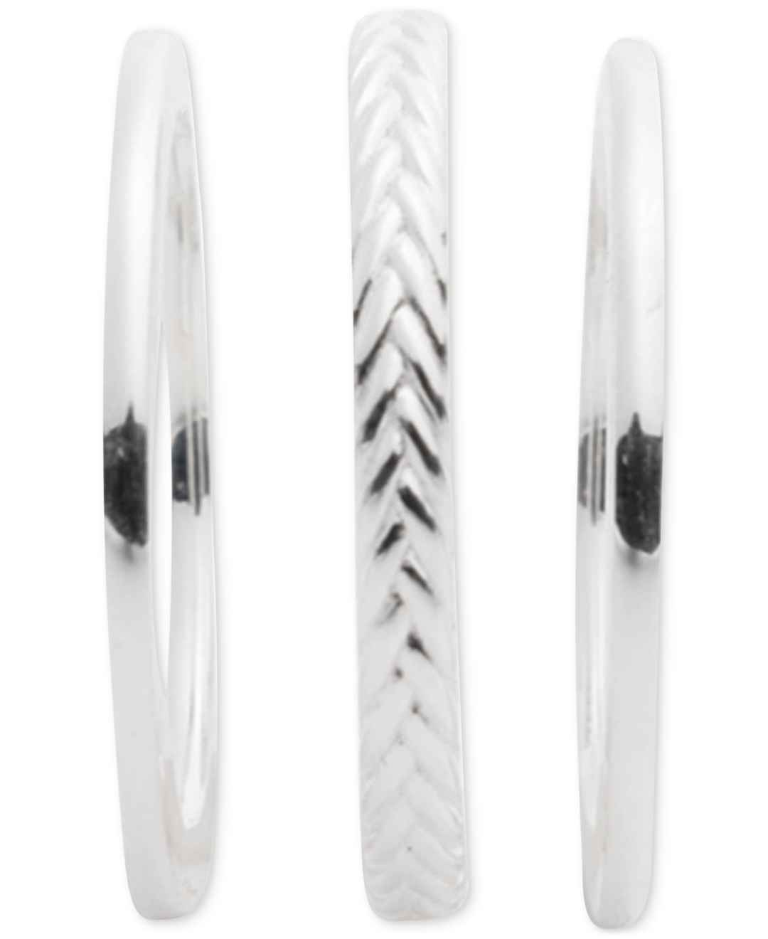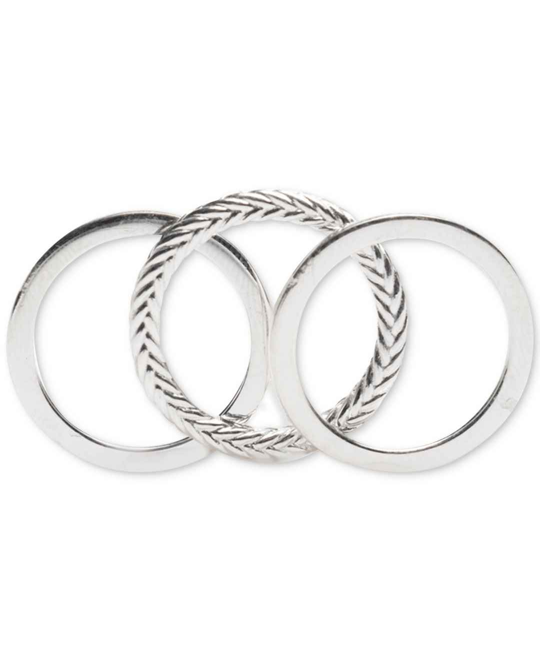 Lauren Ralph Lauren 3-Pc. Set Polished & Herringbone Design Stack Rings in Sterling Silver - Sterling Silver